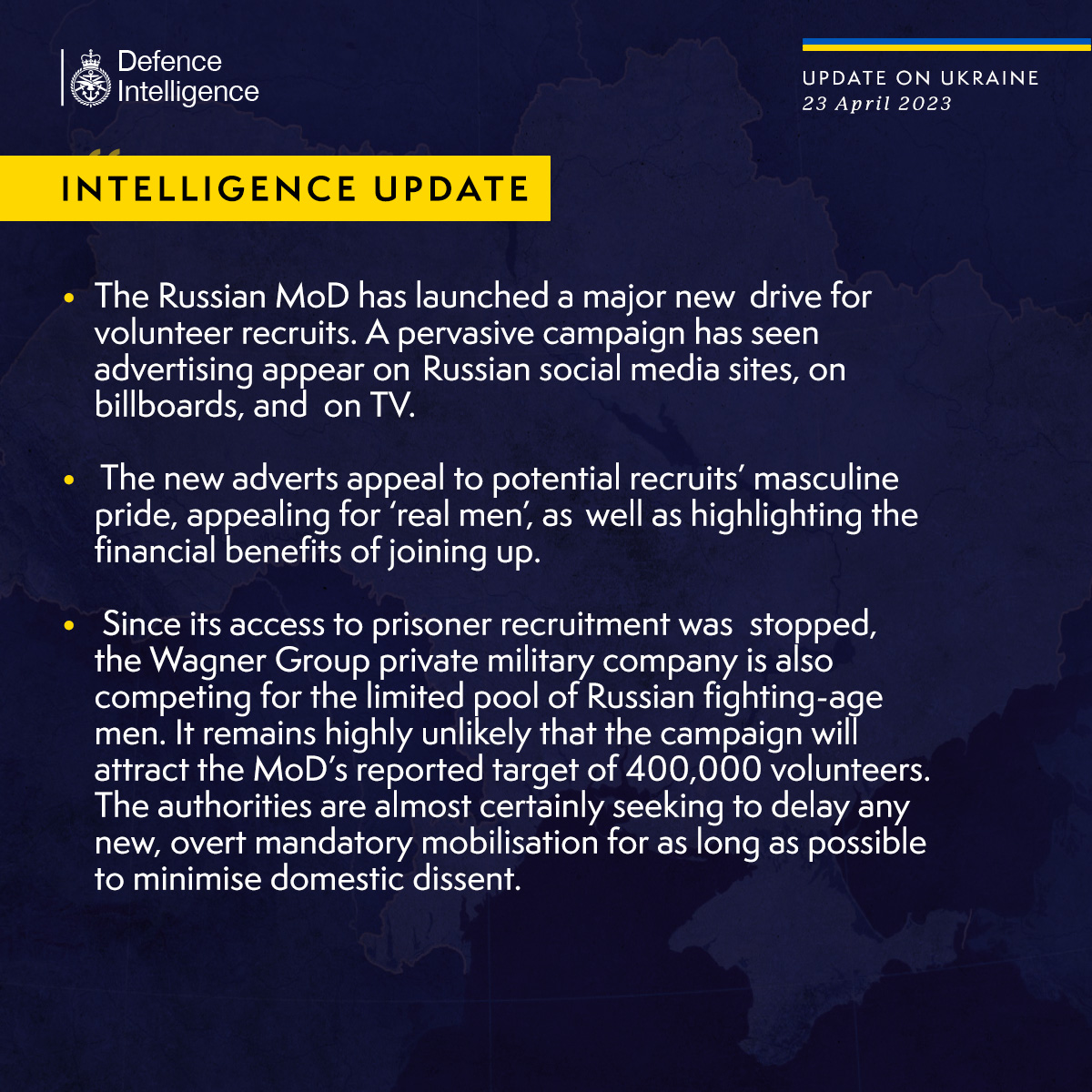 MoD Defence intelligence update summary on the situation in Ukraine 23rd April 2023