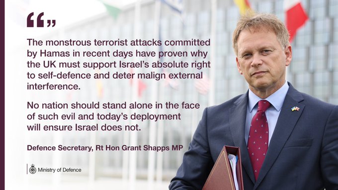 "After Saturday's terror campaign & rampage by Hamas in Israel, I’ve authorised the deployment of UK military assets to the eastern Mediterranean