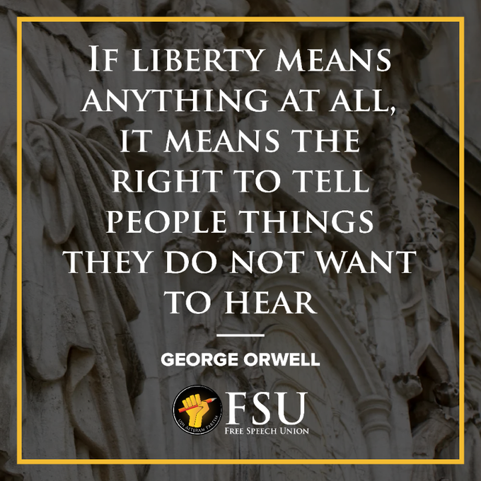 Quote by George Orwell, Image by the Free Speech Union.