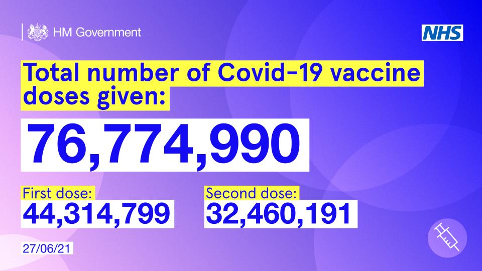 Fantastic news that half of all adults under 30 have now had their first vaccination. Walk-in clinics have been offering a jab to any adult who wants one this weekend and we have made great progress: here are the latest numbers.
