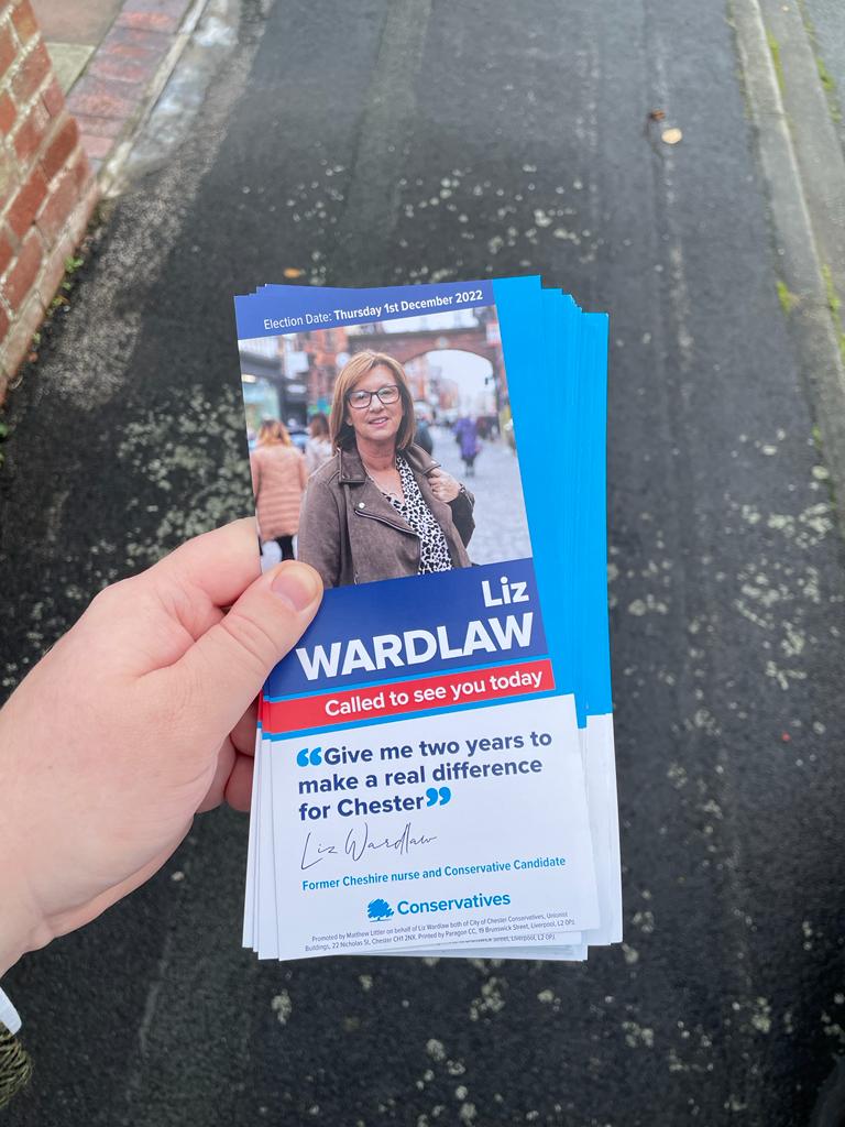 Out campaigning in Saughall today, with Cheshire Conservatives, for Liz Wardlaw, Conservative candidate in the City of Chester by-election on 1st December.
