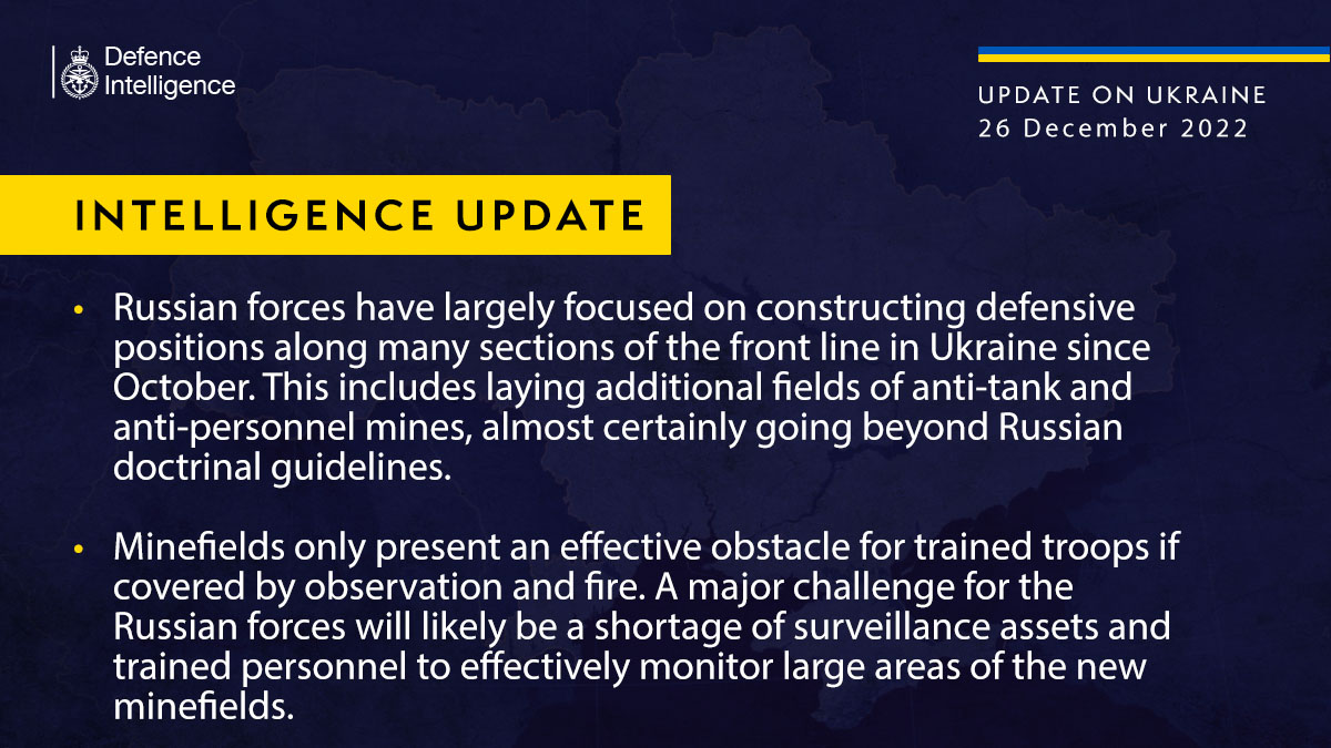 MoD Defence intelligence update summary at 26th December 2022