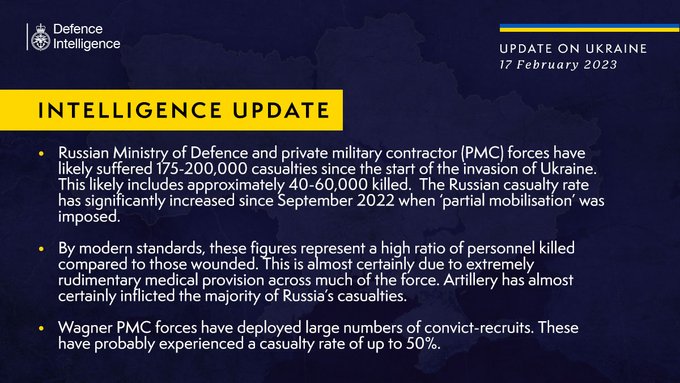 MoD Defence bulletin on the situation in Ukraine 17th February 2023