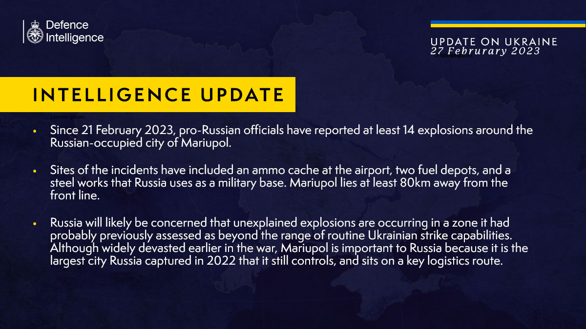 MoD defence intelligence summary on the situation in Ukraine 27th Feb 2023
