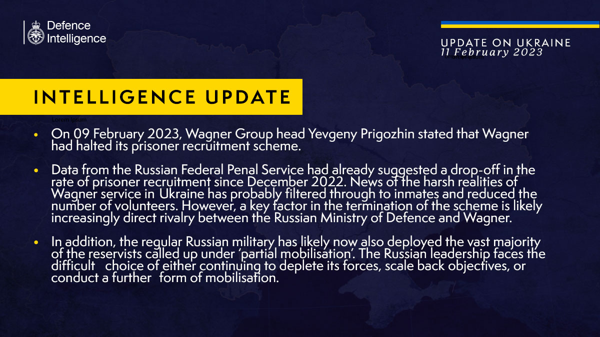 MoD Defence intelligence update on the situation in Ukraine, 11th February 2023