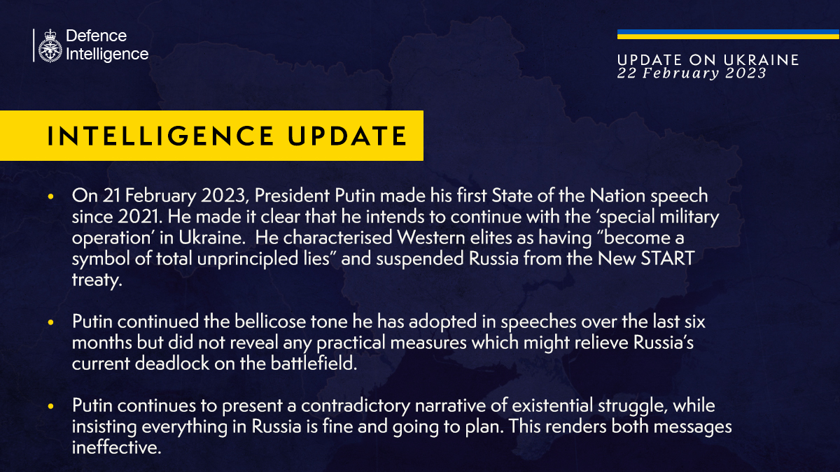 MoD defence intelligence update on the situation in Ukraine 22nd February 2023