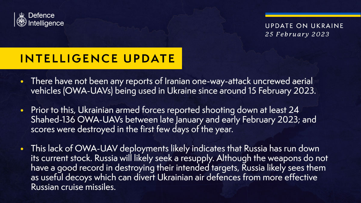 MoD Defence intelligence update on the situation in Ukraine 25 February 2023