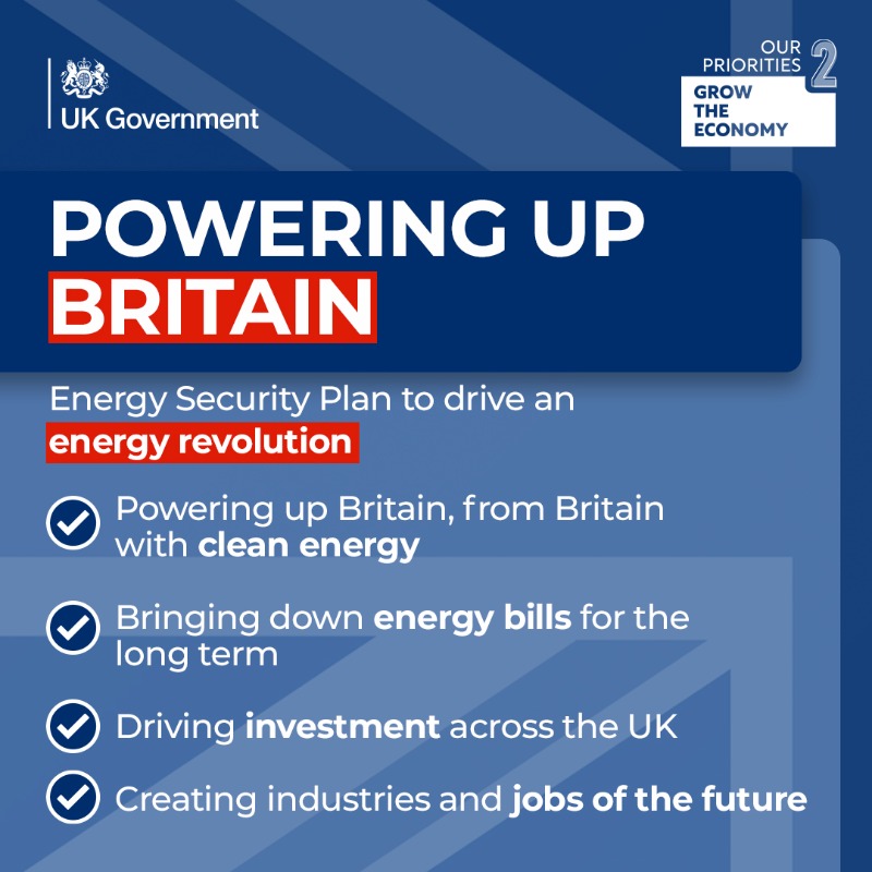 Today the government announced our multi billion pound plan, Powering Up Britain, strengthening our energy security by delivering cheap, clean, British energy and creating new jobs as we grow the economy.