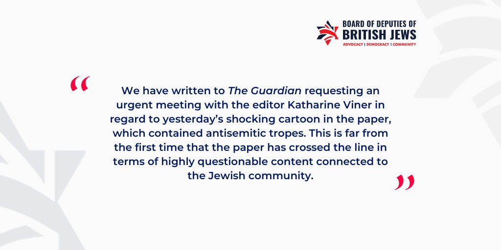 My quote today is from a statement issued by the Board of Deputies of British Jews about a statement they have made in response to a cartoon which appeared in yesterday's Guardian.