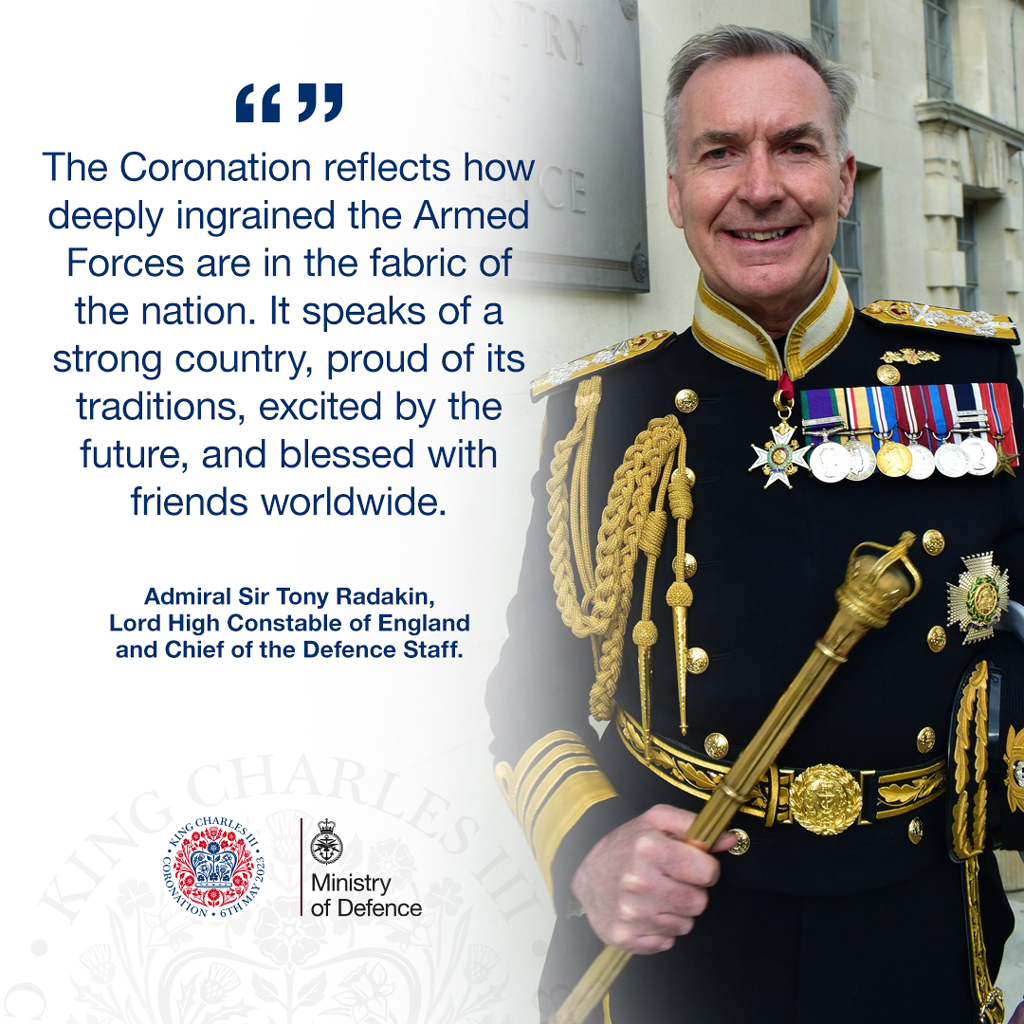 The Chief of the Defence Staff, Admiral Sir Tony Radakin, served today as Lord High Constable of England, a role appointed by His Majesty The King and only revived for Coronations.