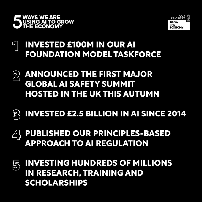 - This will cement Britain's position as a world leader in AI and help us deliver the opportunities of this new technology for people across the UK – from growing the economy to cutting waiting lists.