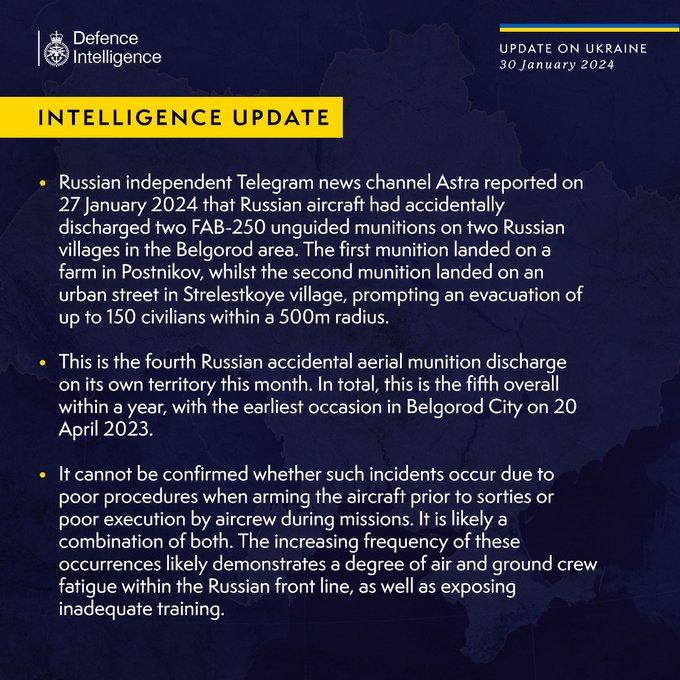 Mod Defence update 30th January 2024 - Russian air force bomb their own side again