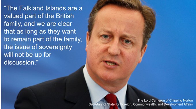 (David Cameron, Foreign secretary, in the Falklands yesterday, referring to the 2013 referendum in which the people of the Falkland Islands voted overwhelmingly in favour of remaining a UK overseas territory.