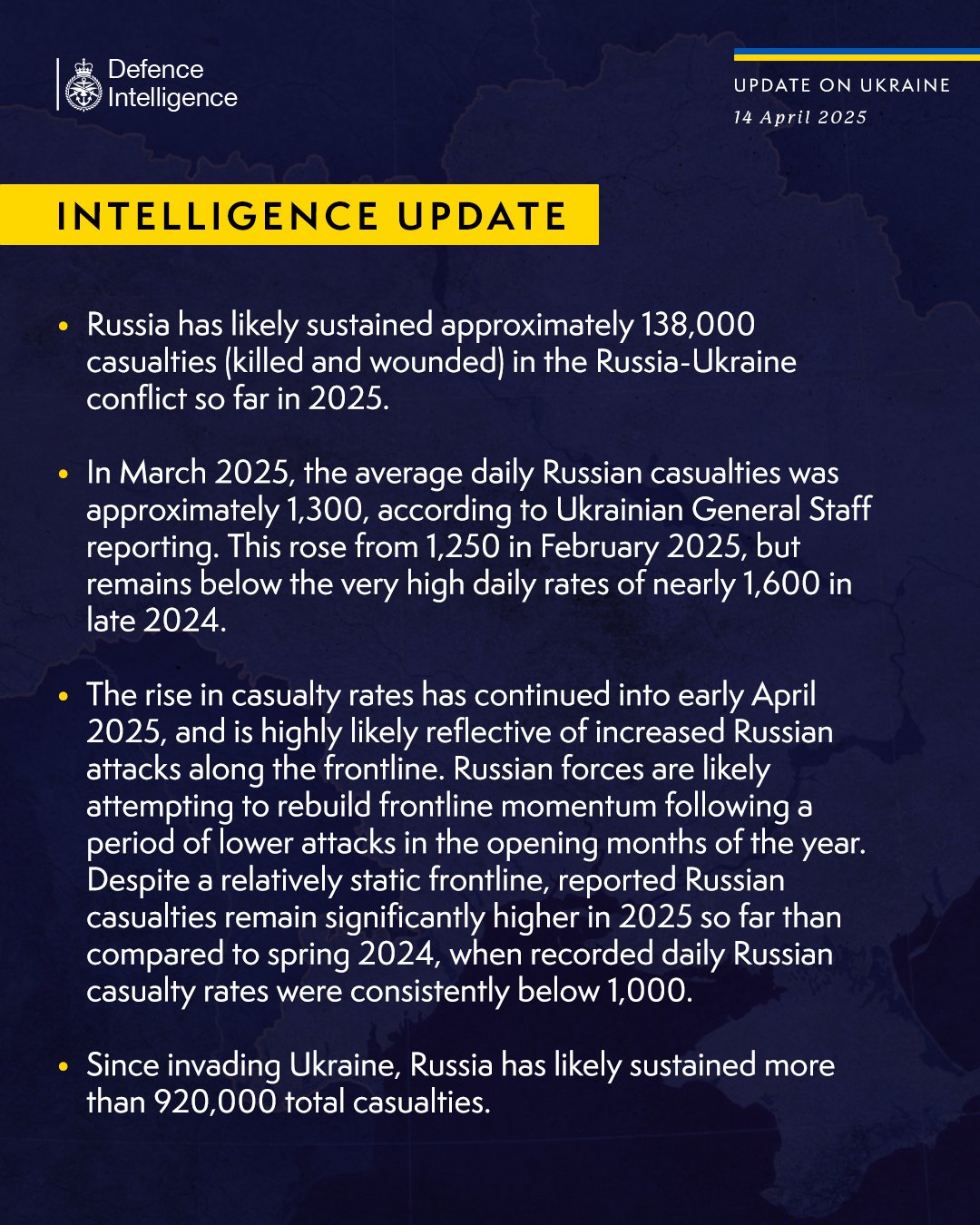 MoD defence intelligence update 14th April 2025