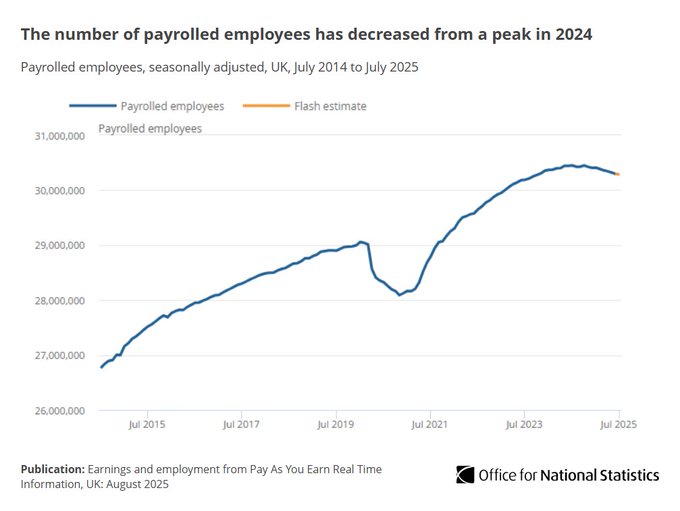 The quote was accompanied by a retweet from the Office of National Statistics, confirming that the latest revised employment payroll figures are down, which reads as follows: